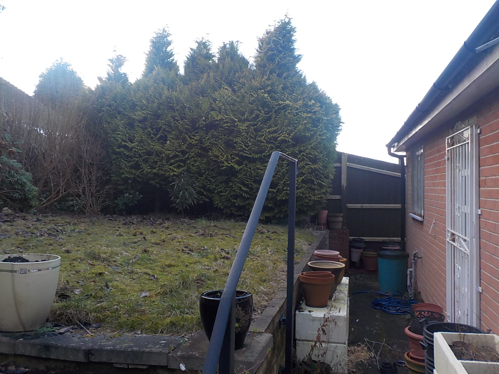 Trees The trees are of insufficient size or proximity or the building to affect it at present. Consideration should be given to controlling the ornamental tree. The owner of the adjacent waste land should be put on notice that trees growing within it have the potential to affect the building or services and that they are likely to be liable for any such damage. In reality due to the ground being higher than the subject property direct influence from trees is considered to be unlikely unless they fall over or parts fall off. See Photographs 6 and 7